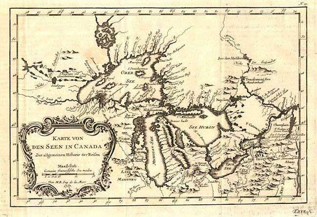 Karte von den Seen in Canada Zur allgemeinen Historie der Reisen, 1757