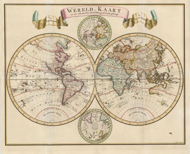 Wereld-Kaart na de alderlaatste Ontdekking in't Licht gebragt, 1744