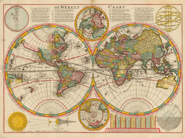 Wereld-Kaart na de alderlaatste Ontdekking in't Licht gebragt, 1744