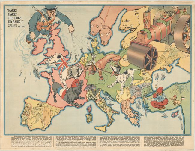 Rare Political Caricature Pocket Map Depicting European Countries as Dogs