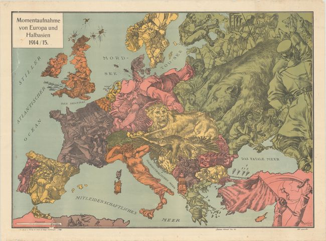 Rare German Edition of Political Caricature Map of Europe Featuring Dogs