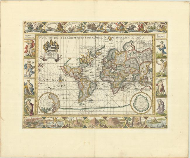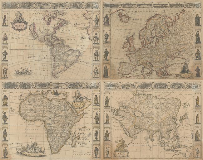 The First World Map with Lavish Allegorical Vignettes of the Continents
