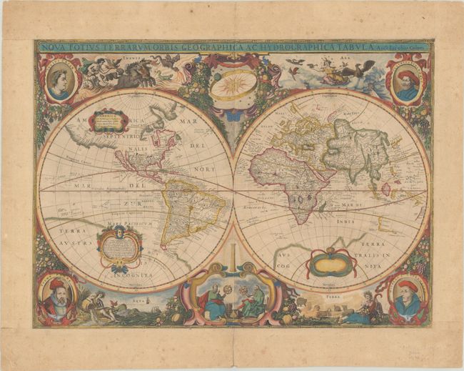 Double Hemisphere World Map Featuring Both Old and New Cartography