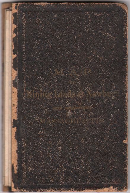 This uncommon pocket map depicts the town and vicinity where silver deposits were discovered in the late 19th century. It is drawn on a detailed scale of 125 rods per inch (about 2,060 feet per inch) but does not actually show any mining activity. Rather, it details roads, creeks and rivers, and individual plots with land owners' names. There is good detail of the railroads and depots including the Boston and Maine Railroad and the Eastern Railroad. The only mention of mining we can find on the map is the Mining Station on the B&M Railroad. The map further locates hotels, Old Town Hill, Turkey Hill, Woodbridges Island, lighthouses along the Atlantic shore, and more. In 1878 Newbury became an instant silver boom town when the ore was discovered in a field that later became the Chipman Mine. The property of Chipman, Shawn & Kelly is shown adjacent to the Mining Station mentioned earlier. After the discovery, land values soared; land valued at $300 for 12 acres prior to the discovery, sold for up to $100,000 after the discovery. The owners of the Chipman Mine were very successful with an estimated $500,000 worth of silver recovered. The mine closed in 1925. Folds into original brown boards (3 x 5") with gilt title on front cover. Dated 1875 but issued circa 1878-79. Billed as a mining map, it is more accurately a real estate promotional map by the publisher, whose name frequently appears among the land parcels shown on the map.