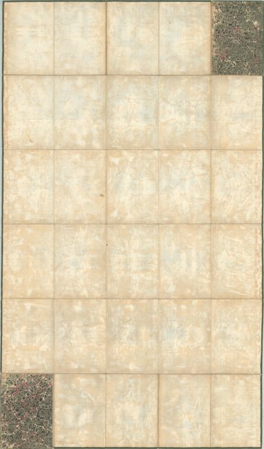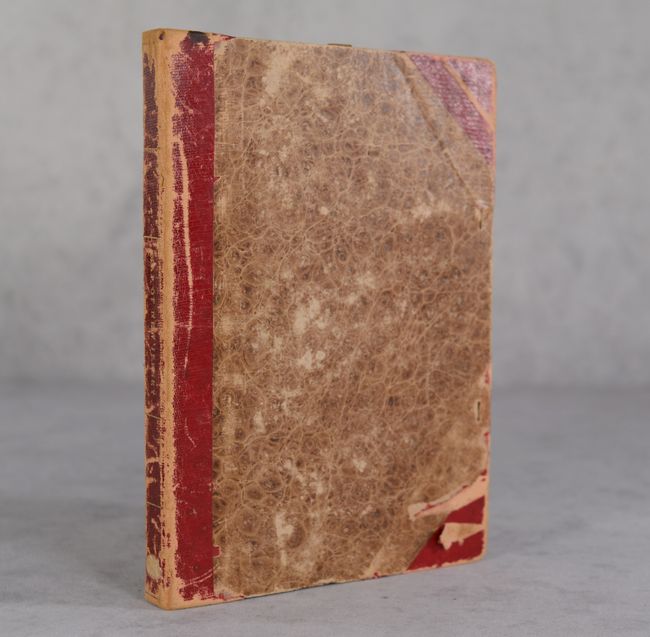 Contemporary outline color on a bright sheet that has been dissected and backed with contemporary linen. There is some light offsetting and a previous owner's stamp along the right sheet edge. New ribbon edging has been added all around. Covers have moderate shelf wear and several small abrasions.