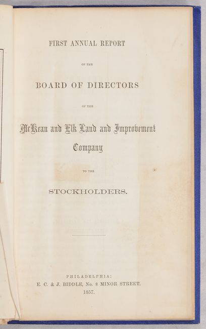 Map of the Estate of the McKean & Elk Land & Improvement Company with Avenues to Market (23.7 x 21.2"). Condition: There is some minor offsetting and short binding tears at right (B+)