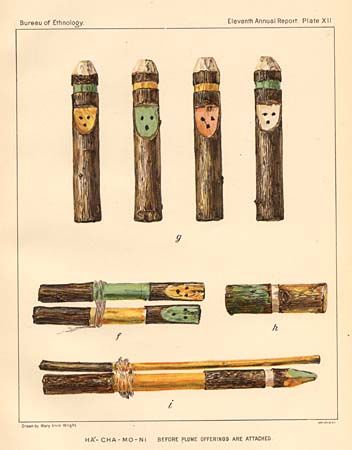 Eleven fine collotype prints from the report on the Sia culture by Matilda Coxe Stevenson. These depict ceremonial fetishes, costumes, sand paintings and other artifacts. All but two with original tissue guards.