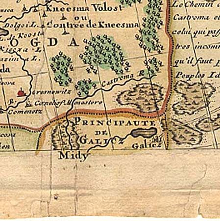 This is the northern sheet of Delisle's important map of the Russian Empire. The map is centered on Moscow and provides great detail of the towns, roads, forests and topography. The map is decorated with a nice title cartouche featuring a sleigh, coat of arms, animals and a hunter.