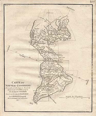 An interesting little map with the North-South and East-West axes at oblique angles to the continents. In North America the Pacific Northwest coastline is not depicted and a series of rivers and lakes make up a Northwest Passage.