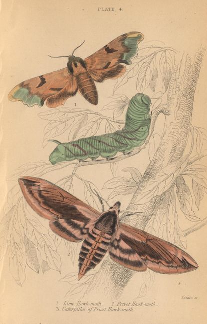 Collection of plates from this great series. Ten plates feature beautiful and very colorful moths from Vol. XXXVII - Exotic Moths [and] Vol. XL - British Moths, Sphinxes, &c. Fourteen plates feature an interesting array of beetles and insects from Vol. XXXIV - Introduction to Entomology. Six plates featuring bees are from Vol. XXXVIII - Bees. Complete with title pages and engraved frontis for each volume. A collection of 30 hand colored plates that include many very nice images.