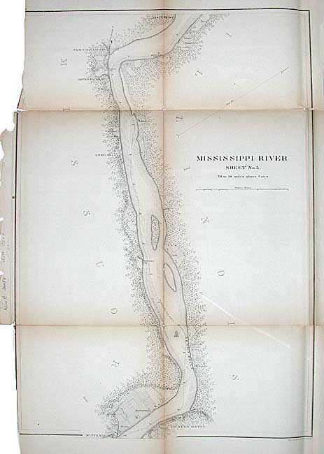 Complete and matching set of six charts with great detail along the Mississippi River. Created for use by Rear Admiral S.P. Lee's Mississippi Squadron and covering from Cairo to St. Mary in Missouri. Titles include: 1). Mississippi River from Cairo IL To St. Marys. MO in VI Sheets; 2) Mississippi River Sheet No. 2 - 25 to 41 miles above Cairo; 3) Mississippi River Sheet No. 3 - 41 to 61 miles above Cairo; 4) Mississippi River, Sheet No. 4 - 62 to 78 miles above Cairo; 5) Mississippi River Sheet No. 5 - 78 to 96 miles above Cairo; 6) Mississippi River Sheet No. 6 - 96 to 115 miles above Cairo. Sizes vary slightly. Rarely seen as a complete set.