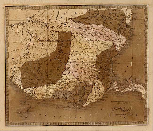 Good group of atlas maps: South America; Indiana; Peru and Bolivia; New Granada, Venezuela & Ecuador; Chinese Empire and Japan; Spain & Portugal; Russia In Europe; Russian Empire. Each with a keyboard style border. Size varies slightly.