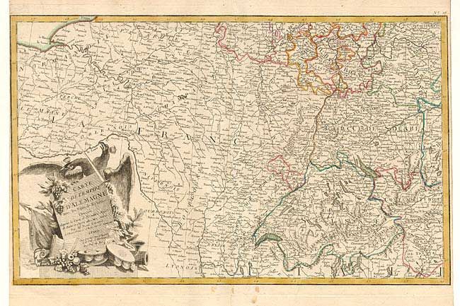 Matched set of four detailed maps (un-joined) of the German Empire. Extends to cover western Europe from Holland south to Lake Geneva and Grenoble, east to Venice and beyond into Hungary and north to Konigsberg and Memel. Includes part of England, Denmark, Sweden and the Baltic. Decorative cartouche and large dedication cartouche. Published by Lattre.