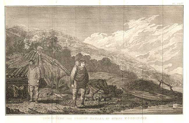 Views from the Dutch edition of Cook's Voyages. These views show the native villages in Norton Sound, Oonalaska, and Nootka. Pl. CXI - Inwooners van Norton-Kanaal en Hunne Wooningen, Pl. CXIII - Inboorlingen en Verblijfplaatsen van Oonalashka, Pl. CII - Gezigt van een Huis in Nootka Kanaal van Binnen, Pl. CI - Gezigt van de Wooningen van de Inboorlin en in Nootka Kanaal.