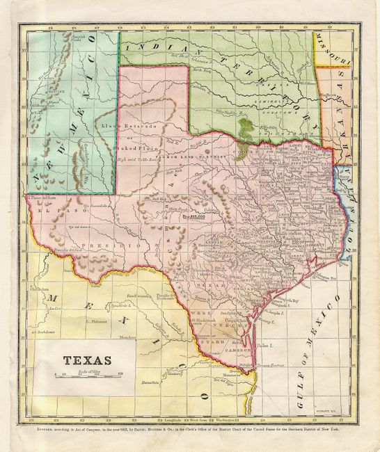 Nicely colored in a modern hand. Small stain in lower Texas in Nueces and Starr counties. Couple of tiny edge tears repaired with tissue.