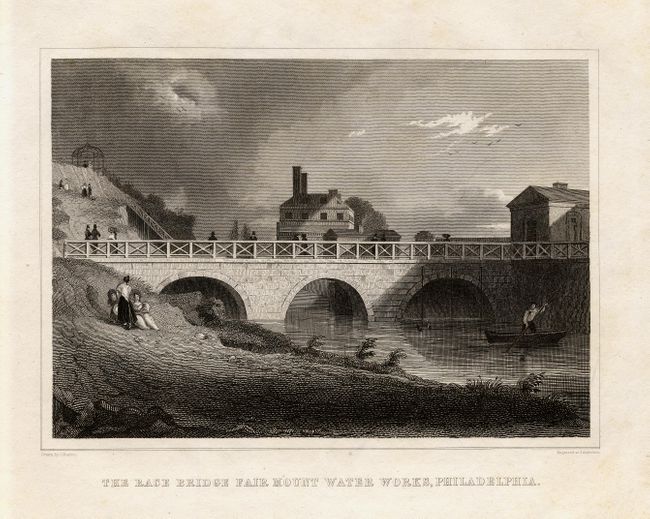 Nice group of copper engravings from this important early history. 1) Head Waters of the Juniata Alleghany Mountains, Pennsylvania; 2) The Race Bridge Fair Mount Water Works, Philadelphia; 3) Pententiaky, Philadelphia; and 4) Philadelphia. The latter is particularly well-rendered and is a view of the city from the river with many sailing vessels. Sizes vary slightly.