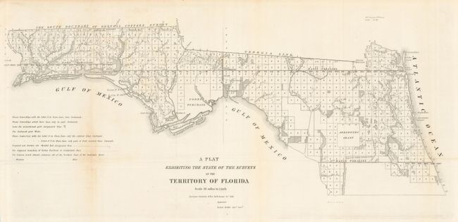 The former is from the Surveyor Generals Office Tallahassee Oct. 1841, (22.5 x 10"). Good detail and information on survey progress in the Panhandle. The latter is a highly detailed plan with much topographical information. Locates Cumberland Island and numerous rivers in the area. From a Trigonometrical Survey under A.D. Bache. Original survey by Capt. J.H. Simpson and Lieutenant A. W. Evans, topography by A.M. Harrison and resurvey of the bar by C.O. Boutelle in 1862. Size (31.5 x 24.5").
