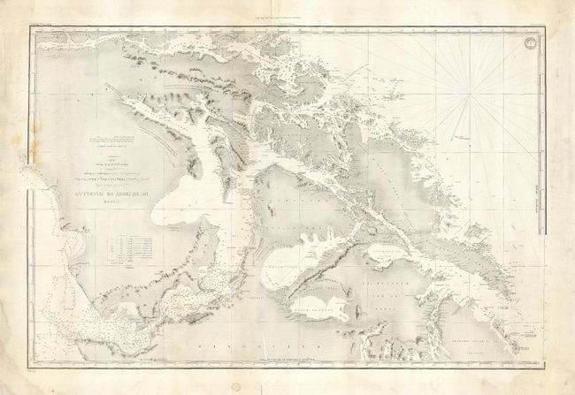 Great sea chart of the Strait of Magellan filled with superb detail including soundings, anchorages, hazards, current directions etc. First issued from information gathered by Captains Phillip Parker King and Robert Fritz Roy, commanders of the Adventure and the Beagle in 1838. This issue with updates to 1870.