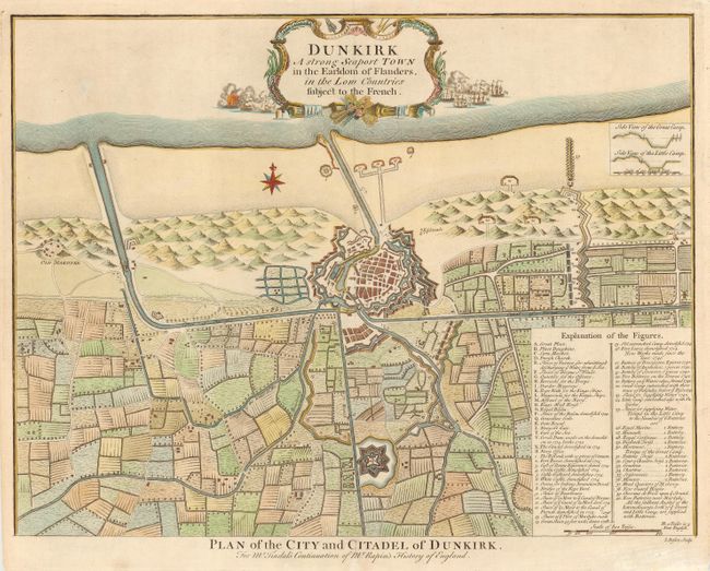 Very handsome view of the walled city with its extensive fortifications and surrounding countryside. A key at bottom left lists 40 important sites. Engraved by I. Basire and embellished with a fine title cartouche incorporating a raging sea battle.