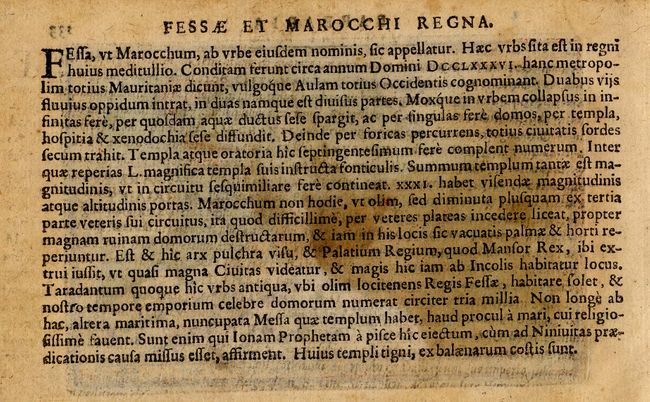 Miniature map of the infamous Barbary coast engraved by the brothers Ambrose and Ferdinand Arsenius who had been assistants to Frans Hogenburg and co-engravers of Ortelius' folio Theatrum. Beautifully engraved with stippled seas and a strapwork title cartouche. This series of maps was accompanied by text by Michel Coignet and was published by Jan B. Vrients. Latin text on verso.