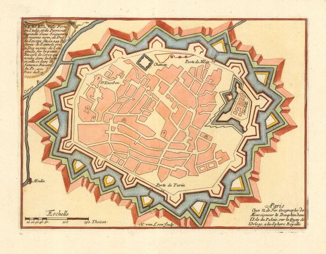 Handsome plan of the fortifications at Vercelli. Engraved by Herman van Loon. Nicolas de Fer held the title of Geographer at Louis XIV's court. He was one of the most prolific publishers of plans of European cities in the late seventeenth century.