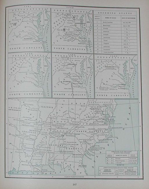 A complete atlas with rough covers. This is the expanded version of the 1886 atlas with a number of additional maps and city plans. A huge atlas with at least 155 maps, charts and a few thematic diagrams. Includes numerous city plans, many not found in other atlases. All double-page maps are printed on a single sheet and tipped in. Cover indicates this is "Grand New Census Edition." Small folio, 1/2 leather and gilt-stamped cover, 518 pp.
