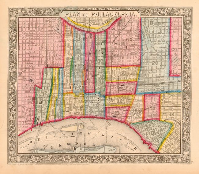 Collection of city plans with Mitchell's first edition floral borders. Maps include 1) Plan of New York; 2) Plan of Boston; 3) Plan of Philadelphia; 4) Plan of Baltimore; 5) Plan of New Orleans; and 6) Plan of Cincinnati and Vicinity. All measure approximately as noted. Great set of plans showing the development of these six important cities in 1860.