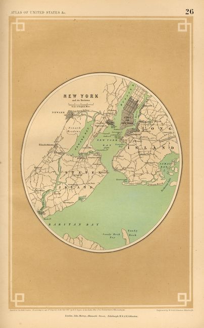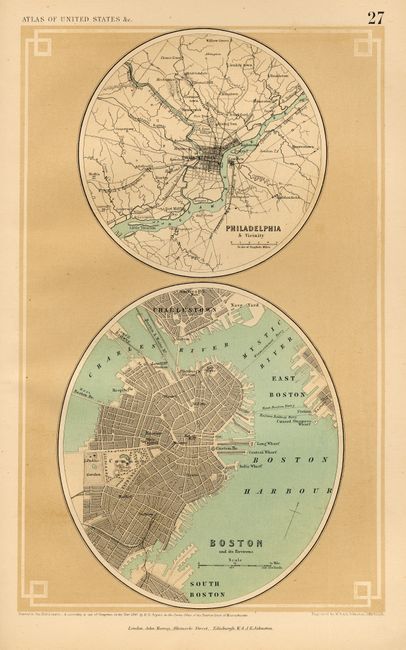 This terrific tall folio atlas is the result of an unusual cartographic collaboration between an American (Rogers) and a Scot (Johnston). The atlas includes beautifully engraved maps and perhaps the best examples of Scottish mapmaking in the pre civil war period. Of special note are the important maps of western states and territories; Territory of Utah, Territory of New Mexico, State of California and the State of Texas. The General Map of the United States shows Free & Slave-holding states through coloring. Contains 24 double-page maps and five single-page town plans detailing the cities of Quebec, Montreal, New York, Philadelphia, Boston, Cincinnati, Louisville & Jeffersonville, New Orleans, and San Francisco. Hardbound in brown cloth with quarter calf, embossed gilt titling. Title page, Contents, text on North America, maps and plans. Gilt to all edges of maps (TEG).