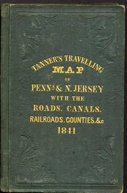 This scarce pocket map folds into green gilt-stamped covers with title "Tanner's Travelling Map of Penna. & N. Jersey with the Roads, Canals, Railroads, Counties. &c. 1841." Boards measure 3.8 x 6 inches. The map is printed on fine bank note paper with beautiful original full hand coloring. Locates a surprising number of early railroads. The legend locates state capitals, county towns, villages, mills, iron works, forts, post offices, battle grounds, roads, ferries, water falls, and more. Main roads have mileage noted between segments. A most desirable map that is the pocket map edition of the map from the scarce American Atlas. Engraved by H.S. Tanner and Associates.