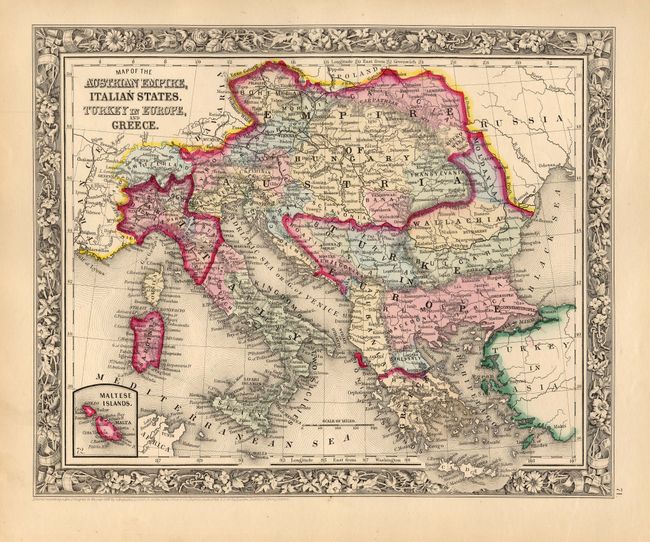 2) "Map of the Austrian Empire, Italian States. Turkey in Europe and Greece" with an inset of the "Maltese Islands."