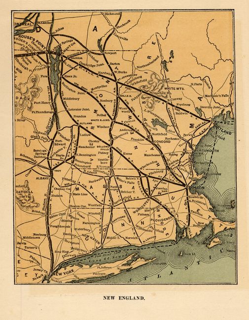 A very obscure and uncommon travel book. Printed wrappers, 48 pp., 16 full-page maps of cities, states and travel routes in the northeast U. S. and Canada with extensive travel notes and suggestions, plus many full-page ads. Full-page maps include New England, Niagara Falls, suggested routes along the Hudson River, Cayuga and Seneca Lakes, Lake Keuka, Adirondack Mountains, routes along the St. Lawrence River, city plans of Quebec and Montreal, and more. Paper covers printed in blue ink.