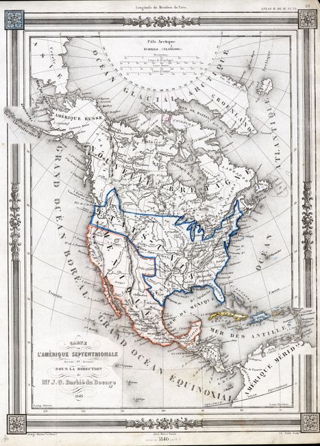 This attractive map of North America is enclosed in a decorative border. The United States is shown to include Texas and a part of present-day British Columbia.