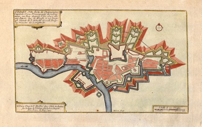 This fine small plan of Sedan, the largest medieval stronghold in Europe, illustrates its multifaceted fortifications. Nicolas de Fer held the title of Geographer at Louis XIV's court. He was one of the most prolific publishers of plans of European cities in the late seventeenth century.