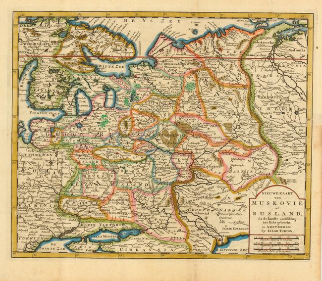 Detailed map of the European reach of the Russian Empire covering the region from Finland to the Ural Mountains and south to the Black and Caspian Seas. Engraved by Keyser.