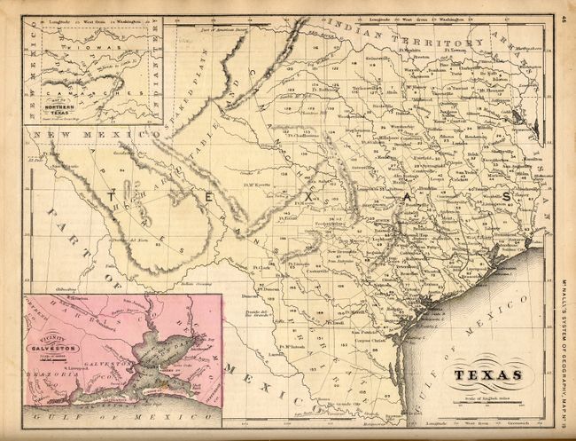 An early publication by Francis McNally, later of Rand, McNally fame. Illustrated paper covers, two engraved frontispieces, engraved title, text and maps, 110pp. Contains 32 full-page maps fully hand colored. Plus two thematic world maps, total of 34 maps with 18 of U.S. interest. Numerous wood engraved vignettes within the Descriptive Geography text. From the National Geographical Series No. 5. A complete and desirable early work by McNally with great maps.