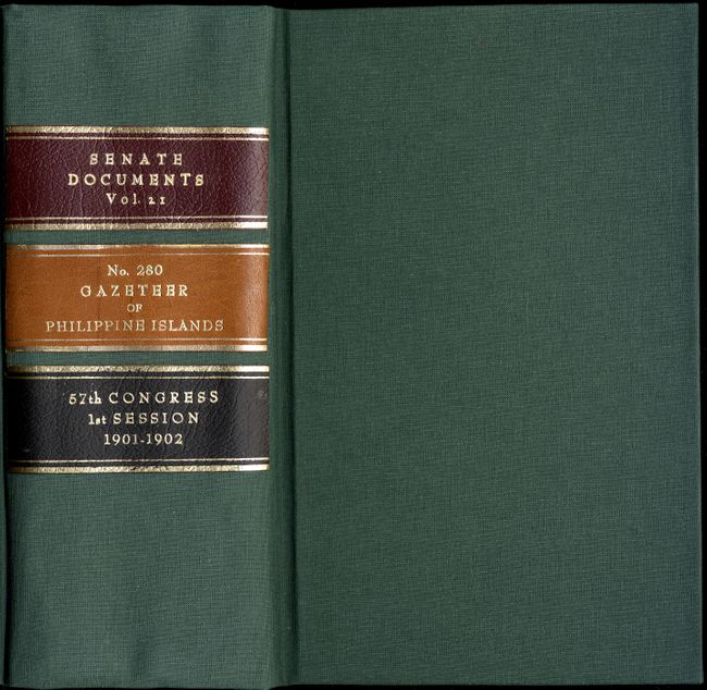 This is a compendium of useful information on the Philippines at the time of their Spanish cessation to the United States. It includes seven principal maps covering the islands in broad context, 141 coast and harbor charts and more than 200 photographic images of cities, modes of transport, buildings, etc. Also included is detailed information on minerals, forests, fruits, industries, commerce, roads, communications, population, towns, physical features, and much more. No such work in English based on local examinations and in this depth was available in 1902. Hardbound in modern green cloth with three gilt stamped labels on spine, new end papers, 933pp. An important and historical publication that is filled with maps and charts.