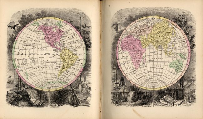 This is the very desirable edition that contains pre-Civil War American state maps. Hardbound in lovely full red morocco with blind stamped and ornate gilt titling on both covers and spine, and full gilt on page edges (t.e.g.). Cover reads "Morse and Gaston's Diamond Atlas - American," as does the first title page. Contains forty maps of U.S. states and territories, eight of British North America, and about 25 covering Mexico, Central and South America. Plus, the Western Hemisphere, North America, the Islands of the Western Hemisphere, the world in hemispheres, and 11 thematic world maps showing data like animal distribution, religions and climate. The map of Washington and Oregon extends to the Continental Divide. The map of Utah and New Mexico is nearly identical to Colton's first edition of 1856/7. The map of Pennsylvania is not present though there is no indication that it was ever bound in; an apparent binding error as it is listed in the contents. Each map is finely engraved and has strong original hand coloring. Two title pages, Publishers' Preface, Contents, text and 56 full-page maps, 239pp.