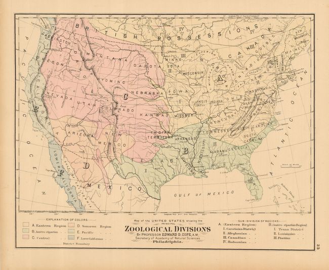4) Map of the United States Showing the Zoological Divisions. Map and text on verso by Edward D. Cope. (15 x 11.8")