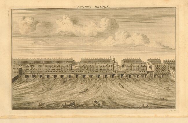 A group of nice, decorative copper engravings from Maitland's History and Survey of London related to the design and construction of the London Bridge. One engraving is 15.5 x 12.5", the others approximately 13 x 8.