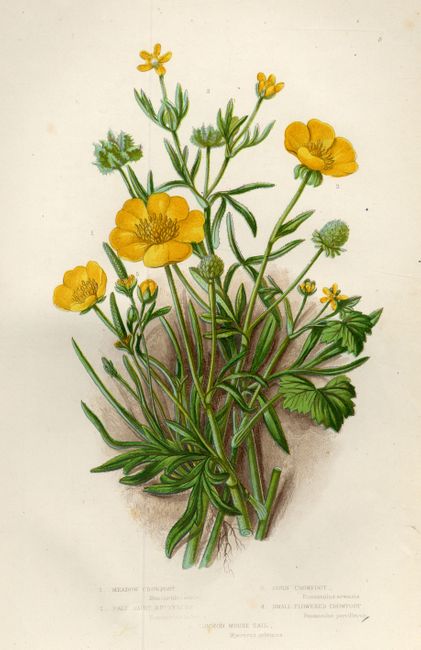 A colorful group of chromolithograph botanical plates. One of the most successful woman botanical artists of her time, Anne Pratt wrote and illustrated twenty books on botany aimed primarily at a popular audience. This group covers a variety of flower types with most plates featuring several similar varieties, grouped like a bouquet.