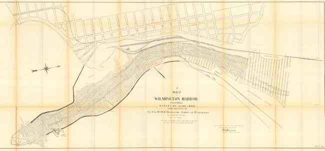2) "Map of Wilmington Harbor California Survey of June, 1893 Under the Direction of Lt. Col. W.H.H. Benyaurd, Corps of Engineers, By L. C. Easton…," Washington D.C., 1895. Enormous map with detailed soundings and extending to show some streets along the harbor, hotels, etc. Extends from Smith's and Rattlesnake Islands south to show all of the break-water and Deadman's Island. Locates the lines of the Southern Pacific Railroad. (62.5 x 28") Sen. Ex. 61, 53rd Congress, 3rd Session.