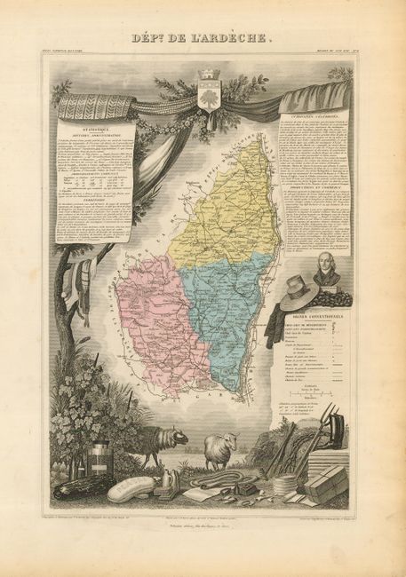 Victor Levasseur's "Atlas National Illustre" and "Atlas Universel Illustre" are among the last decorative atlases published. The maps are all lavishly illustrated with scenes of the countryside, products and activities indigenous to the region.