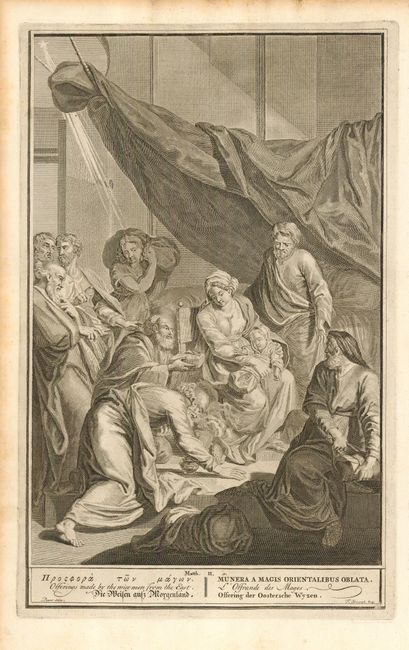 Striking group of New Testament copper engravings by Picart, Houbraken, Carlo Marati published by Pierre de Hondt. Captions in Greek, Latin, English, French, German and Dutch.