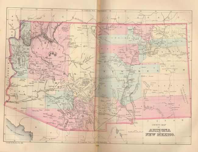 By L.P. Brockett, this geography is loaded with statistics and facts about the western states and territories. There are 8 double page and 3 single page maps generally centered on the western and plains states. Highly detailed and finely engraved, they include Texas and Indian Territory, and County Map of Arizona and New Mexico. Also contains 16 beautiful woodcut engravings. 8vo. 1312 pp. Complete. Original Hardbound in embossed brown cloth with black decorative touches and gilt titling on cover and spine. A very nice example of a hard to find American geography.