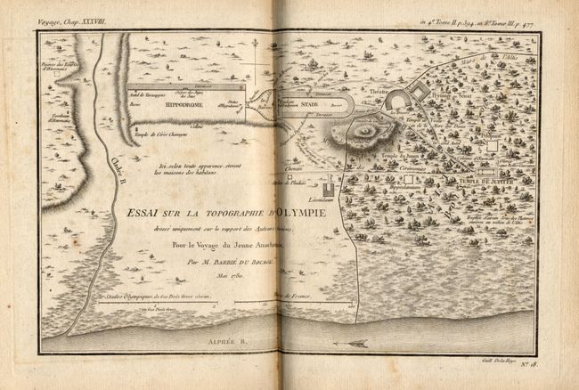 The first book, Recueil de Cartes Geographiques Plans, Vues et Medailles de l'Ancienne Grece... authored by Abbe Jean Jacques Barthelemy, contains 31 maps, plans and views, most of them double-page. Barthelemy, who discovered his admiration of Greek antiquity during his travels to Italy, produced this literary work to help introduce Europeans to Greek culture. Although he never visited Greece, his narrative had a tremendous impact on the European and the Greek public. First edition, published in Paris, 1788. 8vo. (8 x 10"). Complete. Title page; 36 pp. V-XLI; plates. Hardbound in original leather with gilt title on raised banded spine. Text and plates good with some foxing and light offsetting. Several ink notations and two bookshop stamps inside front endpaper. Covers are scuffed and shelf worn, hinges are starting and spine is worn with minor loss at extremities. Signatures and binding are sound.