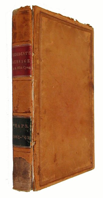 Quarto (9 x 12"). Condition grade C. Original hardbound in embossed brown cloth with gilt titles on cover and spine. Covers are worn and soiled, spine has several splits, some with loss. Corners are bumped with some loss. Contents are damp stained and foxed. There are several pencil notations inside front cover, including the signature of Bradley Sillick Osbon, a naval officer and author of the Hand book of the United States Navy: being a compilation of all the principal events in the history of every vessel of the United States navy. From April, 1861, to May, 1864.