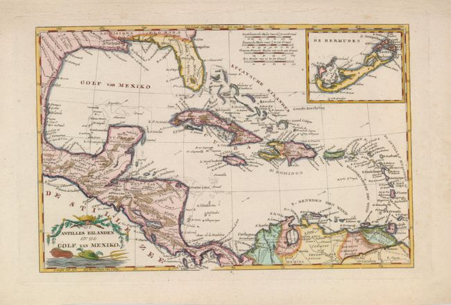 An attractive map extending from Florida and the Gulf Coast to Central America and the northern tip of South America with good detail of the Antilles. Inset with a map of Bermuda at top right. Adorned with a decorative cartouche featuring a garland, crown, trident and a winged hat.