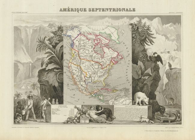 This handsome map portrays the Republic of Texas, the United States extends into present-day Canada, Russia is in control of Alaska, and Mexico's northern border is according to the Treaty of 1819 (mis-printed 1810). The map is surrounded by beautifully engraved scenes of North and Central America including local animals, a ship stranded in the polar sea, and a Mayan temple.