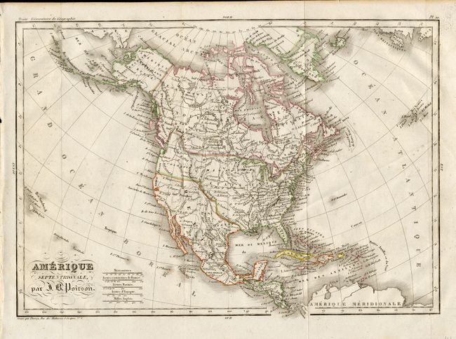 5) Amerique Septentrionale, par J. B. Poirson, circa 1830. Oregon is named Colombia and includes much of British Columbia. Original outline color. (12.3 x 8.5"). Folding, as issued. Grade A.