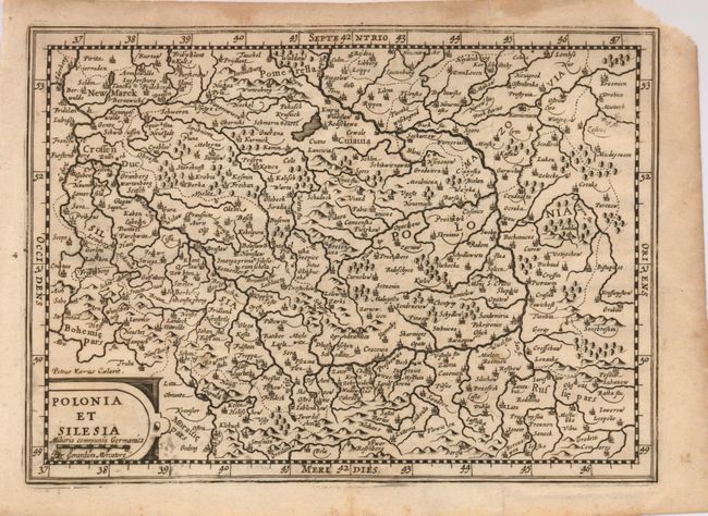 8) Polonia et Silesia is a map of Poland based on the earlier map by Gerard Mercator. Decorated with a simple cartouche enclosing the title and distance scale. (10 x 7.2")